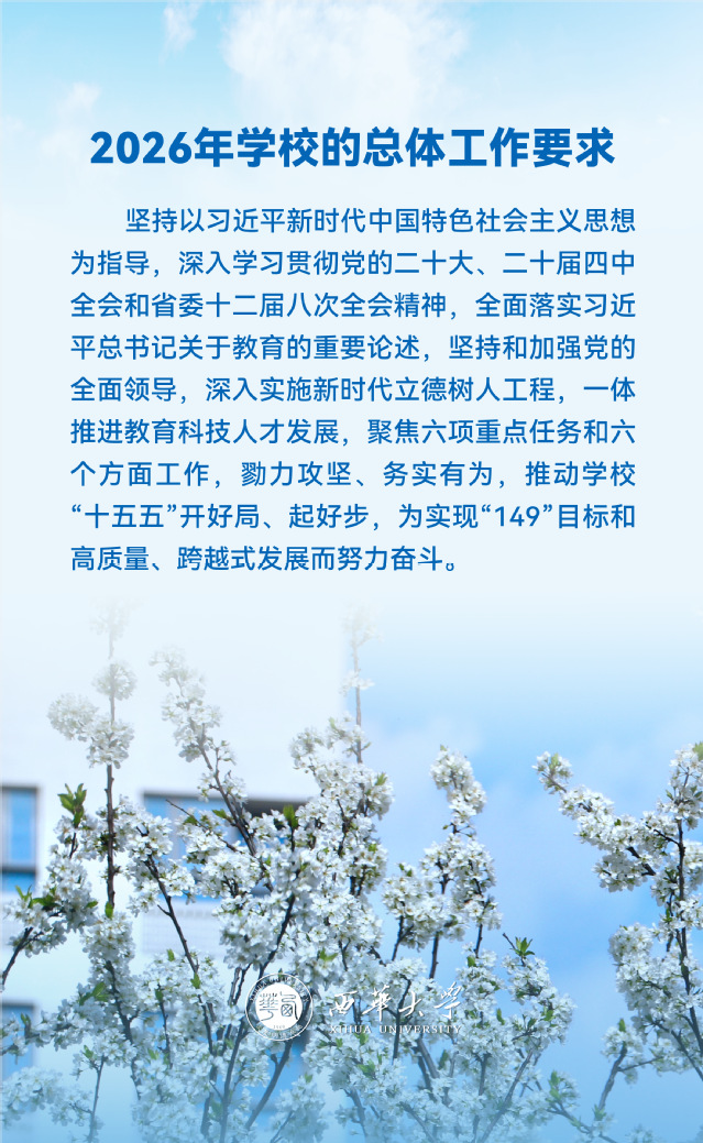 风传花信,春意款款。以奋斗起笔,西华人锚定高质量发展新目标,以实干为要,2026年的工作蓝图正徐徐展开……