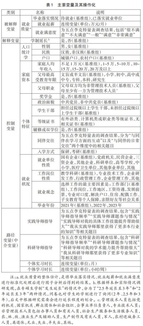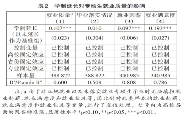 随着我国专硕生规模的逐步扩增,以及就业市场的竞争日益加剧,个体面对教育学制的抉择变得尤为关键,学制延长是否会真正提高专硕生的就业质量?学制延长对专硕生就业质量的作用路径是什么?其作用是否因延长程度、高校层次、专业类型和就业类型的不同而存在差异?回应这些问题不仅能为个体的教育决策带来参考,还能为各高校专硕生培养的提质增效路径带来支撑依据,因此仍存在继续深化的空间和必要。