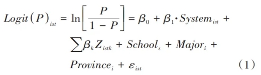 P表示毕业落实的概率,P/1-P代表毕业落实与未落实的概率之比,System表示s高校t年毕业的i学生与基准年(2021年)毕业的同校同专业学生相比是否延长了学制,Z表示人口统计学基本特征、家庭背景、人力资本等控制变量,School、Major、Province分别表示高校、专业和就业所在地固定效应。