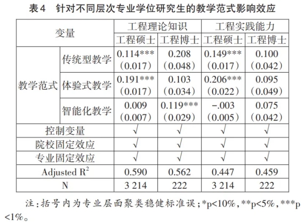 (四)针对不同学历层次工程专业学位研究生的教学范式影响效应